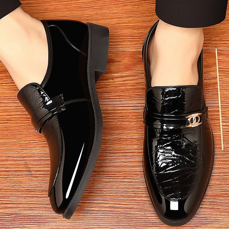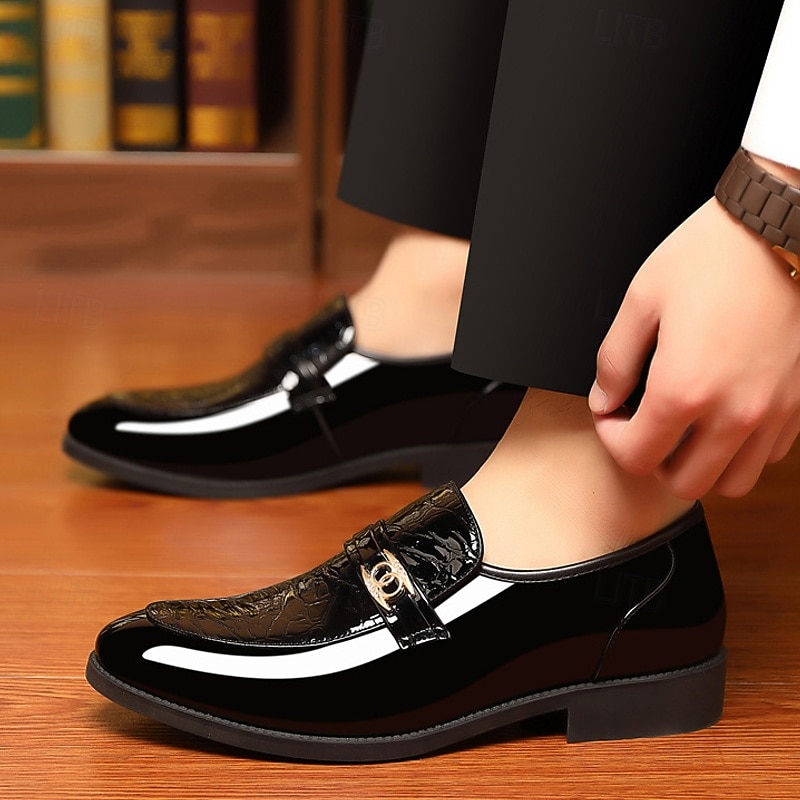 : Expertly crafted from high-quality PU leather, these men's loafers offer a sleek and glossy finish that emulates the elegance of patent leather. The shoes' rich brown color and luxurious crocodile pattern exude sophistication, making them a standout choice for any refined wardrobe.