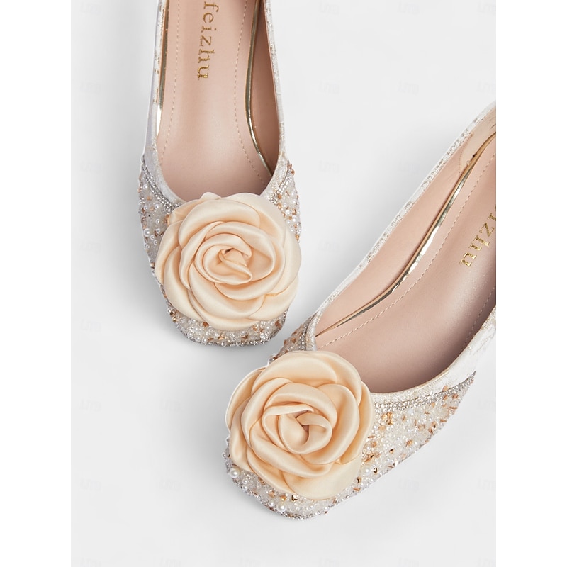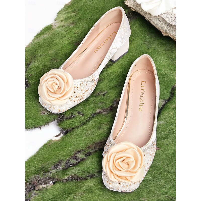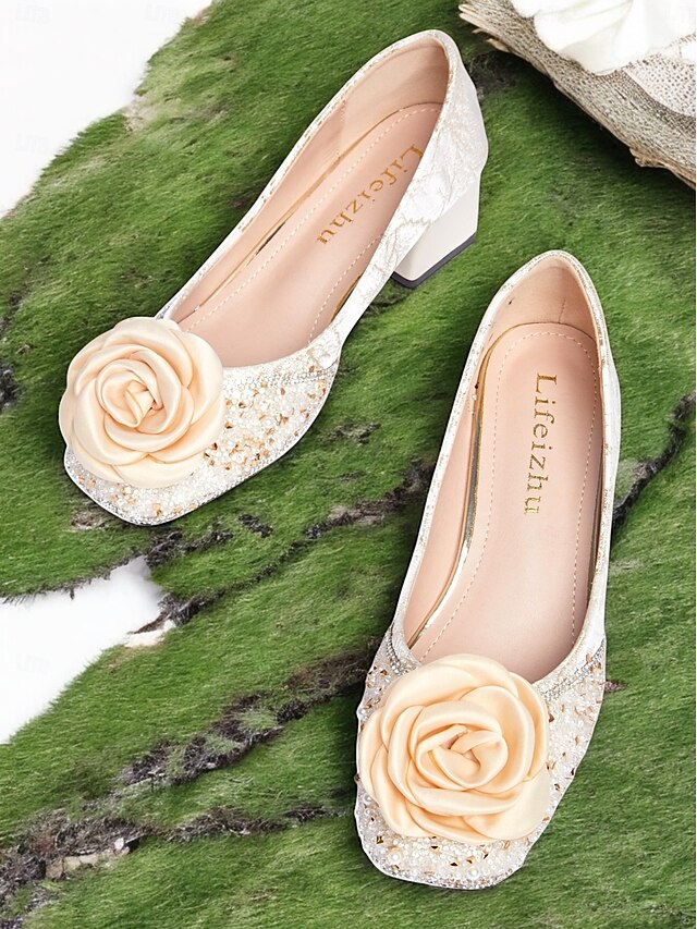 Why Choose White Glitter Pumps with Floral Appliqué – Elegant Women's Wedding Shoes?