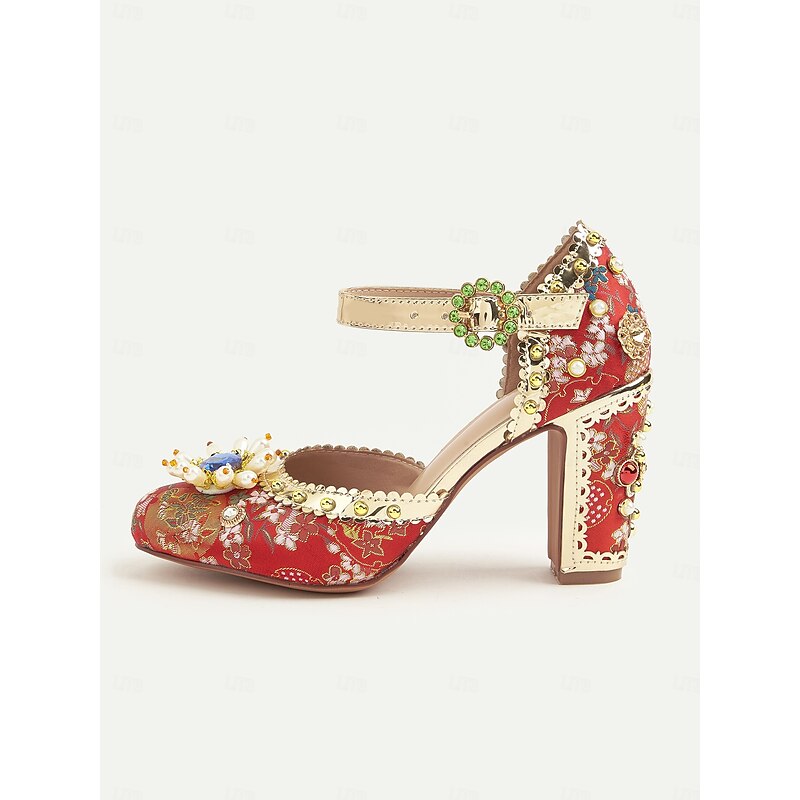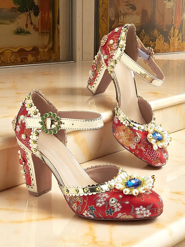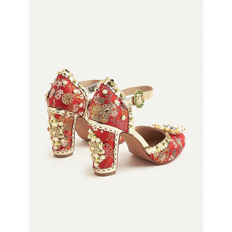 This Women's Red Floral Embroidered Heels with Pearl and Gemstone Accents-1920s Vintage Gatsby-inspired Chunky Block Heels for Special Occasions, Weddings, and Parties combines elegant design with practical functionality. Every detail has been carefully considered to ensure you get the premier possible experience. The finest construction means this product will serve you well for years to come.