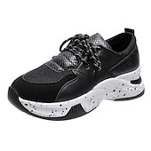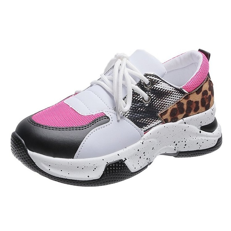 Highlights [Fabric] Crafted from a blend of PU leather and polyester, these women's sneakers offer a durable yet breathable fit suitable for various activities. The quality materials ensure both comfort and long-lasting wear, making them a staple in any casual wardrobe. [Style] With a wedge heel that adds a subtle lift and elegance, these sneakers merge fashionable design with practical function. The sporty-casual style is complemented by a color block pattern, featuring vibrant shades and unique leopard accents for added flair. [Design Highlights] The sneakers stand out with their modern chunky sole, providing excellent support and cushioning for prolonged activity. The iridescent accents on the upper beautifully reflect light, while the secure lace-up closure ensures a snug fit. [Occasions] These versatile sneakers are perfect for a range of settings, from daily errands to outdoor adventures. Their sporty yet stylish design makes them ideal for both casual outings and lively events, seamlessly pairing with numerous outfits. [Size Range] Available in a wide range of sizes from 35 to 43, accommodating various foot shapes and preferences, ensuring a comfortable fit for every wearer. Perfect for those seeking comfort and style in plus-size options. Perfect for everyday use. excellent materials and excellent craftsmanship ensure long-lasting durability.