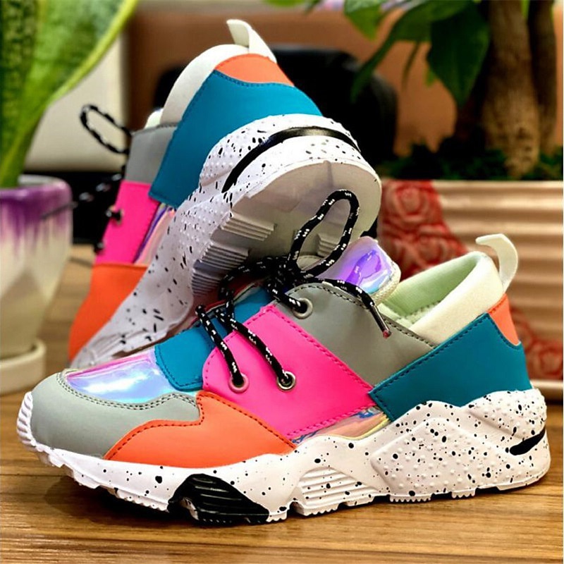Women's Colorful Chunky Sneakers – Fashionable Lace-Up Athletic Shoes with Holographic & Neon Design, relaxing Running Shoes for Casual Wear & Sports