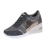 Women's Sneakers Plus Size Height Increasing Shoes Platform Sneakers Outdoor Daily Color Block Summer Platform Wedge Heel Round Toe Fashion Sporty Casual Walking Faux Leather Lace-up Leopard Black