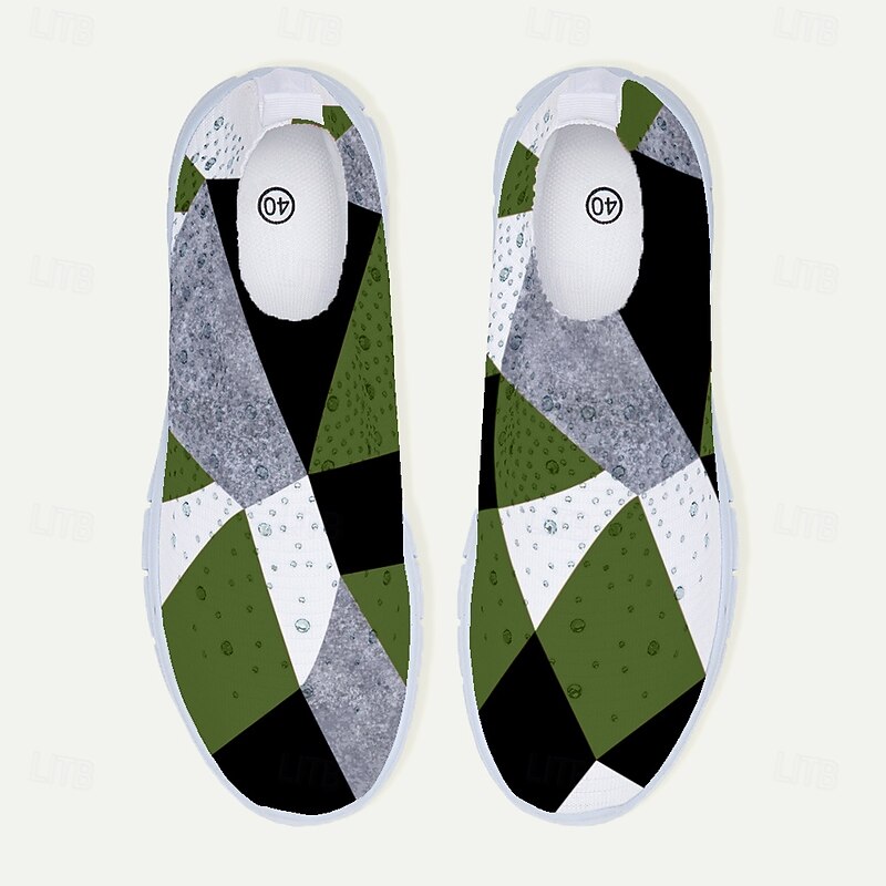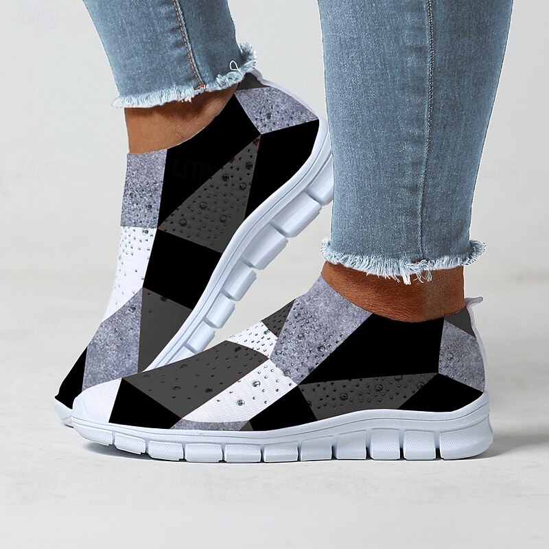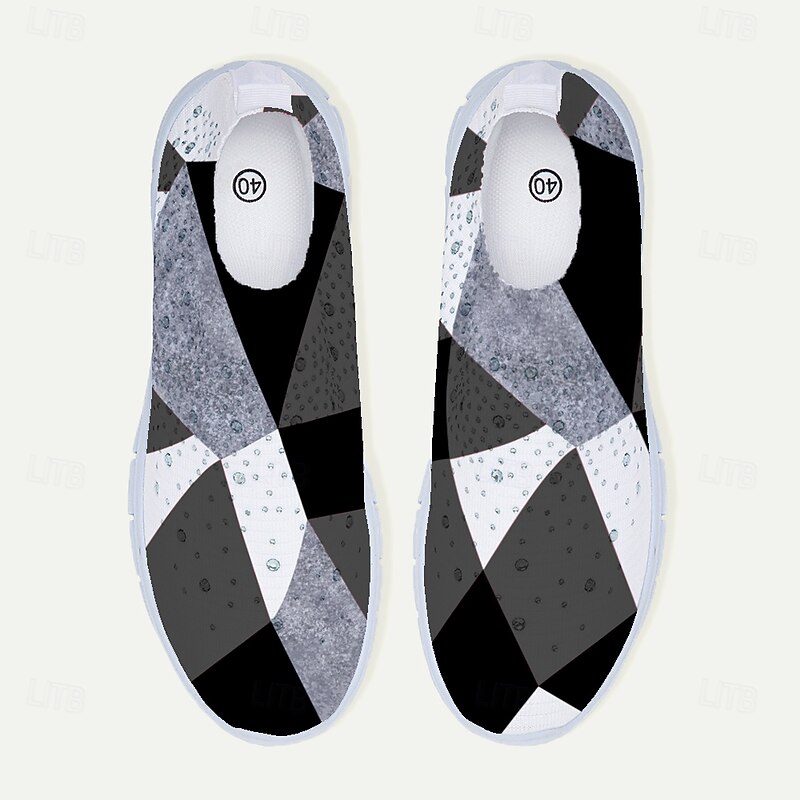 Women's Abstract Art Print Slip-On Sneakers - Breathable Flyknit Casual Shoes for Everyday Wear and Comfort