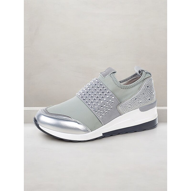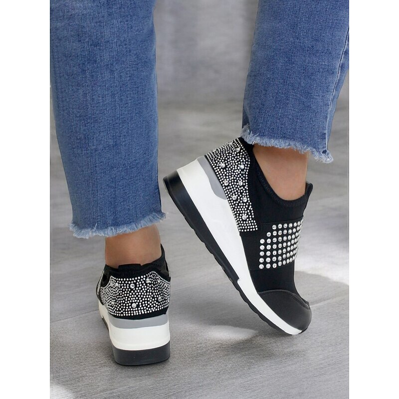 More information about Women's Rhinestone Slip-On Platform Sneakers – sophisticated Casual Shoes with Studded Embellishments and snug Wedge Heel