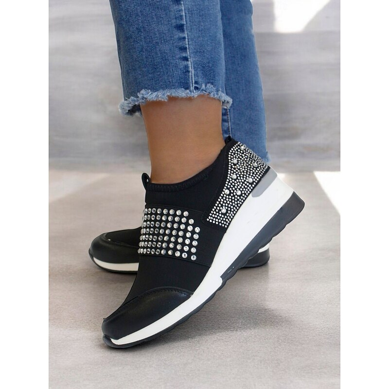 trending ! Women's Rhinestone Slip-On Platform Sneakers – contemporary Casual Shoes with Studded Embellishments and relaxing Wedge Heel