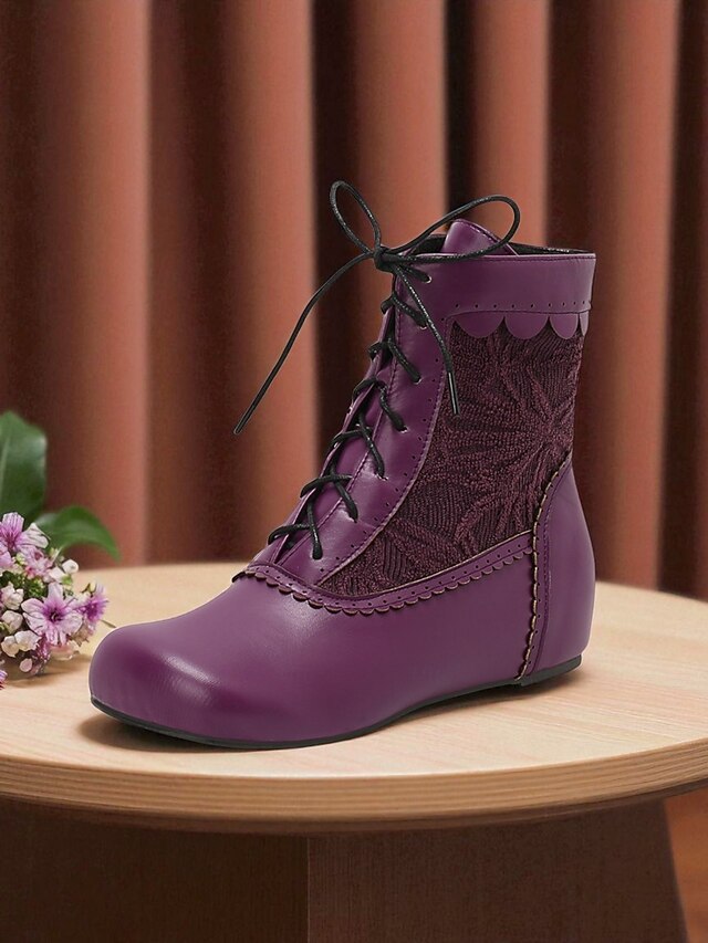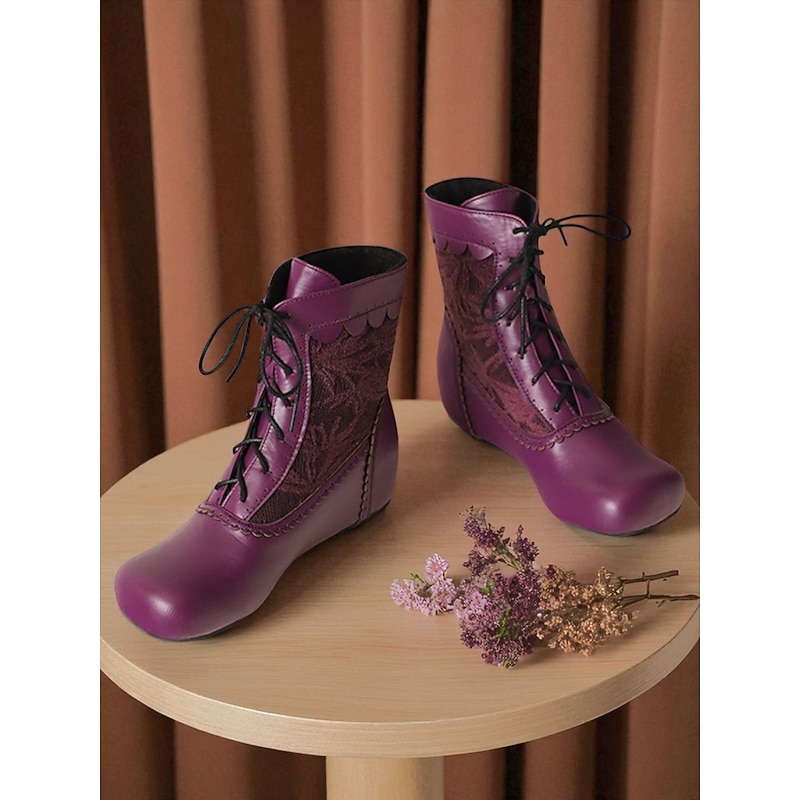 This Women's Purple Lace-Up Ankle Boots with Embroidered Panels - 1900s Edwardian Victorian Style Flat Booties for Cosplay, Fall Festivals and Vintage-Inspired Outfits combines elegant design with practical functionality. Every detail has been carefully considered to ensure you get the leading possible experience. The top-grade construction means this product will serve you well for years to come.