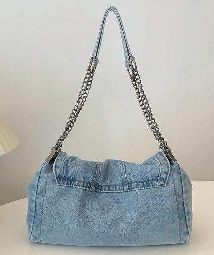 Denim Tote Bag for Women Fashion Adjustable Chain Shoulder Handbag Crossbody Bag Retro Zipper Hobo Purse