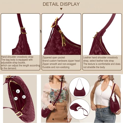 More information about Shoulder Handbags for Women Crossbody Woven Leather Tote Shoulder Bag Purse Hobo Lightweight With Zipper Adjustable Strap