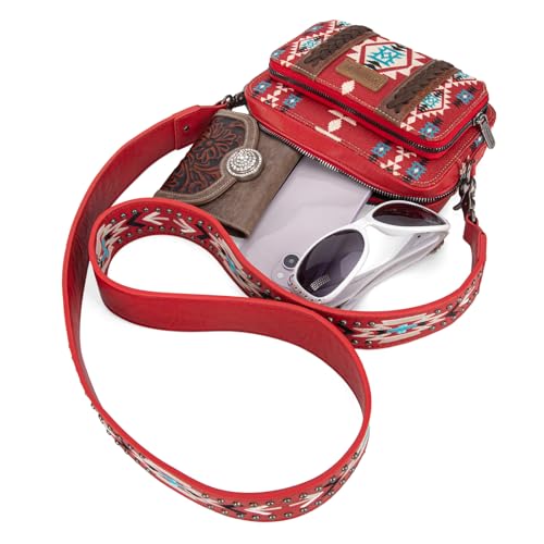 Why Choose Wrangler Crossbody Bag for Women Boho Aztec Small Western Shoulder Bag with Wide Guitar Strap Gift Red WG2207-3005RD?