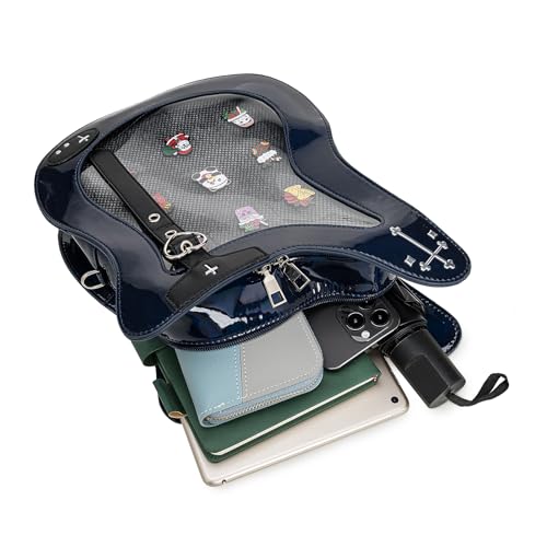 trending ! Rock Metal Guitar Ita Bag Crossbody Shoulder Bags Kawaii Cute Clear Window Pin Insert with a Removeable Strap