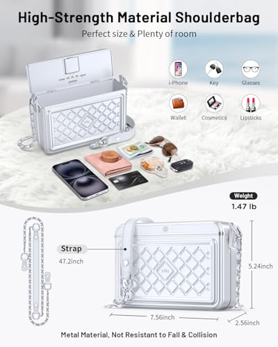 • 【Smart Anti-Theft Sleek Bag for Women】:Bag Combines cutting-edge tech with sophisticated style which effortlessly complements any outfit. The elegant metallic chain handle adds a touch of latest sophistication, blending practicality with refined style—making it for your lovers. The fingerprint and metal body secure lockable shoulderbag features tamper-resistant zippers, RFID shielding, and a discreet locking compartment, empowering women with security & confidence.