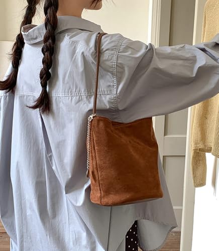 Small Suede Tote Shoulder Bags For Women Slouchy Satchel Womens Bucket Purses Retro Handbag Work Travel Fall