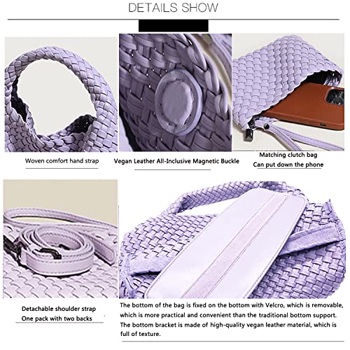 Fabric type: Handmade Woven vegan leatherOrigin: ImportedClosure type: BuckleLining: LeatherThe Woven Handbag Materials:The Hobo Bag made of vegan leather by professional craftsmen;Soft and durable.Pure color design, these make this crossbody bucket bag more stylishWoven Tote Dimensions:1.Tote Bag Size : 8.26Wx 8.26 Hx 4.33D 2.Wallet Clutch: 7.48W x 5.51 H 3.Handle Drop: 2.75 Also Come with a Long Adjustable Shoulder Strap 45.27 Care:Spot Clean with a Barely Damp Rag and Air DryHand woven Design:Delicate woven detailing runs throughout the frame;inside is the same woven bag, fine workmanship,using skilled sewing technology, smooth and stylish, one stitch and one thread, neat and tidyDistinctive Design:Vegan leather all-Inclusive magnetic buckle design & adjustable and removable shoulder strap;Can be used as top handle, shoulder bag, clutch; Suitable for party, shopping, dating, or regular office dayGift:This women's handbag will make any of your outfits look more attractive. Perfect to give as Christmas, New Year, Birthday, Anniversary, Mother's Day and Thanksgiving gifts Perfect for everyday use. excellent materials and excellent craftsmanship ensure long-lasting durability.