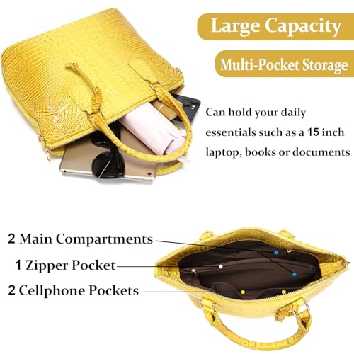 • 【Crocodile Pattern Vegan Leather】 This handbag is made of scratch-resistant faux leather with a crocodile print, polyester lining, effortless for wipe clean. The shiny textured exterior, complemented by a gold zipper and sturdy hardware, enhances its durability and fashionable appeal