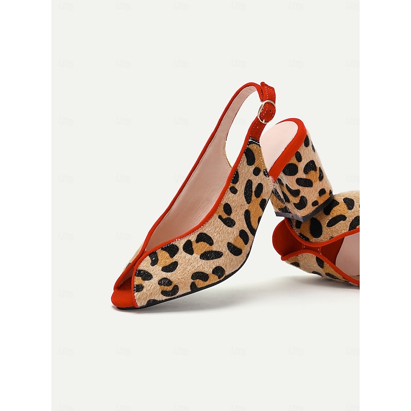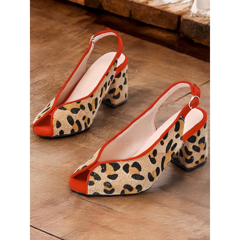 Why Choose Women's Leopard Print Peep-Toe Slingback Heels with Red Trim and Block Heel for Retro Style Parties and Evening Wear?