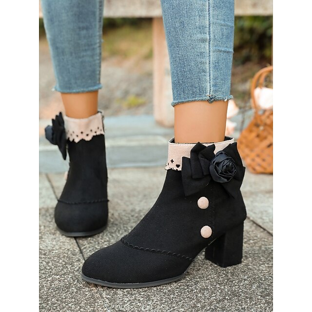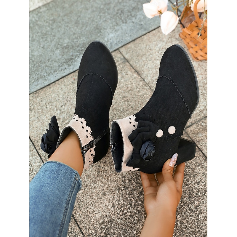 Why Choose Women's Boots Chelsea Boots Daily Floral Booties Ankle Boots Flower Chunky Heel Pointed Toe Bohemia Suede Zipper Black?