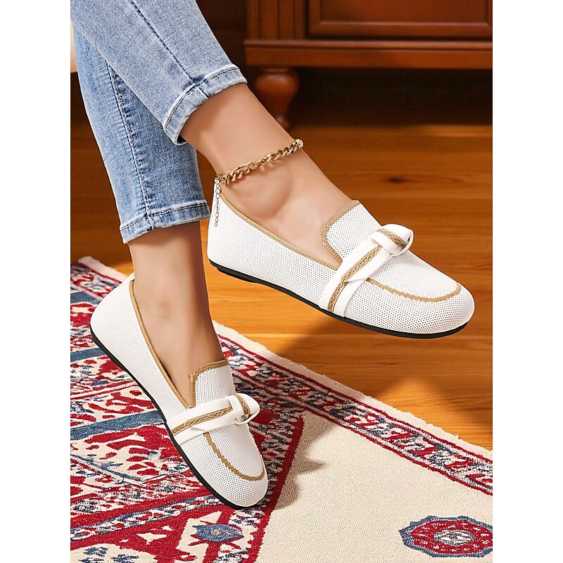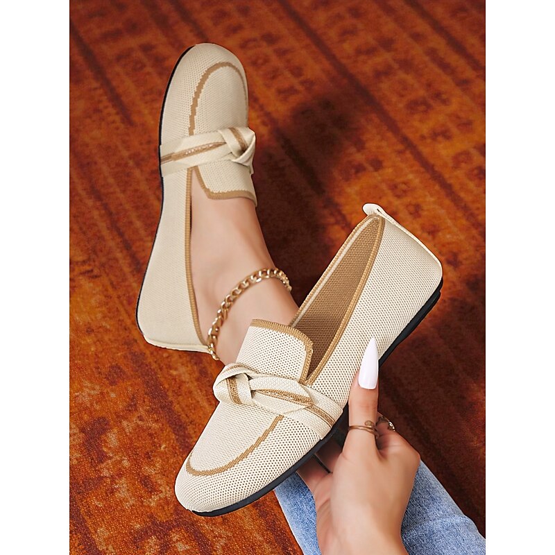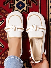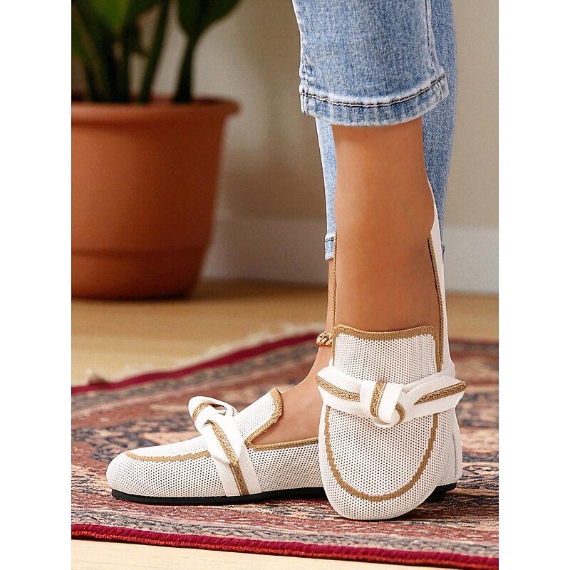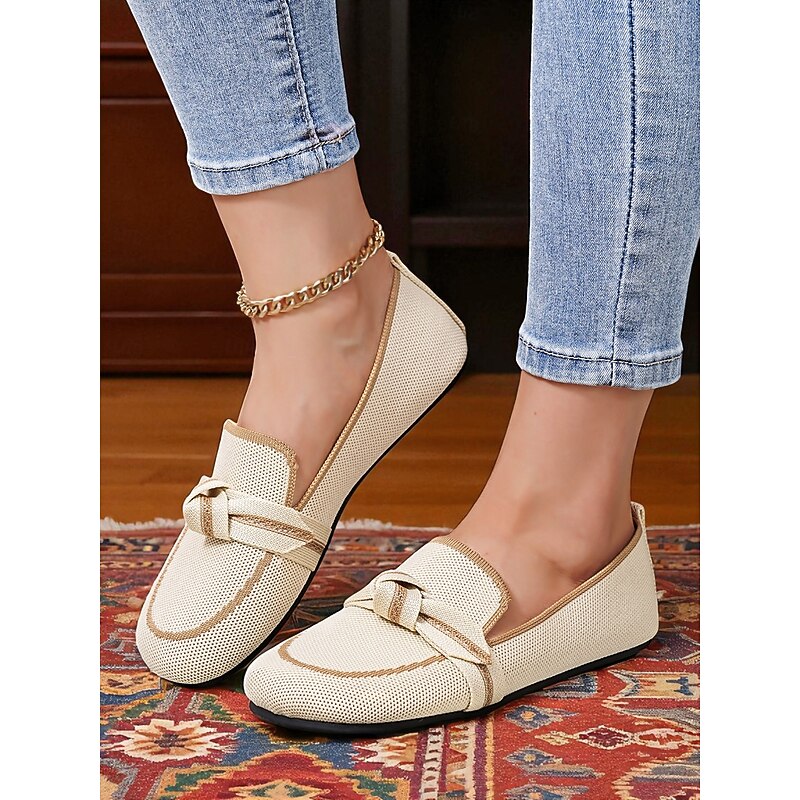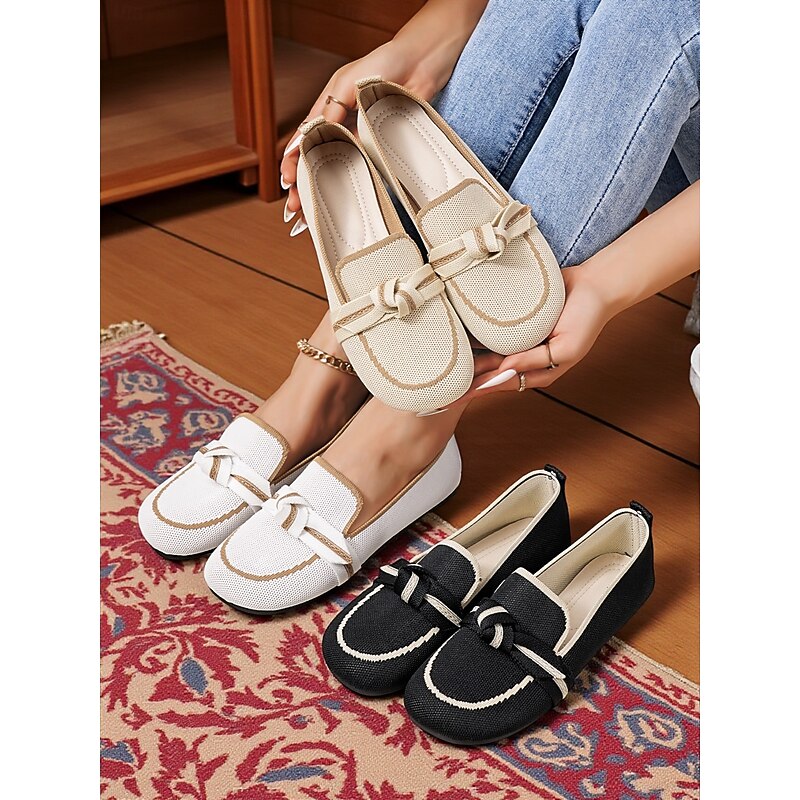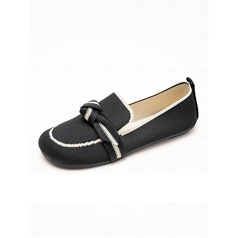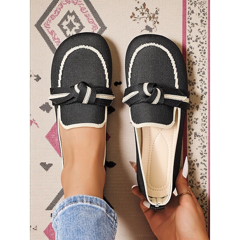 trending ! Women's Wide Width Flyknit Loafers with Knotted Bow – Casual Comfort Flat Shoes for Daily Wear and Travel