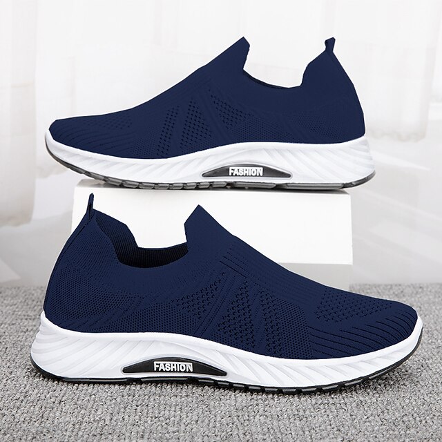 Why Choose Men's Navy Blue Slip-On Athletic Sneakers - Lightweight Flyknit Mesh Casual Walking Shoes with Breathable Design for Everyday Comfort and Style?