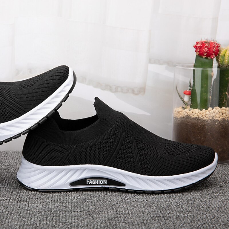 These men's slip-on sneakers exude a youthful and sporty vibe crafted from breathable tulle fabric Designed with a non-slip rubber outsole for enhanced grip and superior cushioning for comfort Ideal to pair with athleisure or outdoor sports attire these versatile sneakers assure a snug fit and offer optimal support for running pursuits in the Spring and Fall seasons