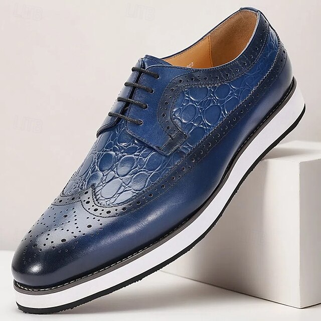 trending ! Men's Premium Blue Crocodile Leather Wingtip Lace-Up Shoes with Elegant Detailing for Formal Dinners, Galas and Special Occasions
