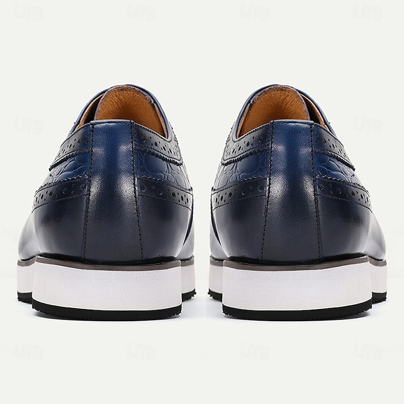 More information about Men's Premium Blue Crocodile Leather Wingtip Lace-Up Shoes with Elegant Detailing for Formal Dinners, Galas and Special Occasions