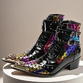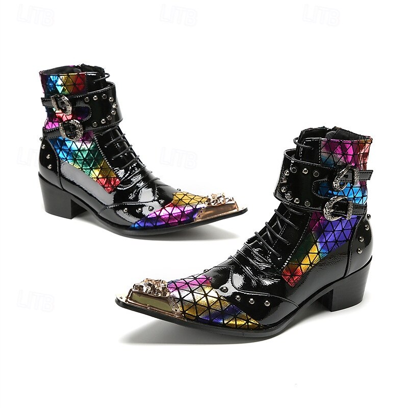 At spsirpa.num.edu.mn, we believe in providing our customers with only the best products. This Men's Black Genuine Leather Multicolor Geometric Pattern Cowboy Boots with Studs and Buckles, 100% Cowhide Western Ankle Boots for Concerts and Rock Stage Fashion is designed with attention to detail and high quality craftsmanship that you can see and feel. Whether you're looking for functionality, style, or both, this product delivers exceptional value.