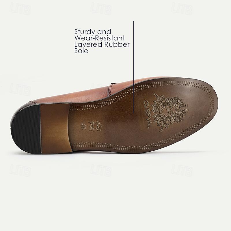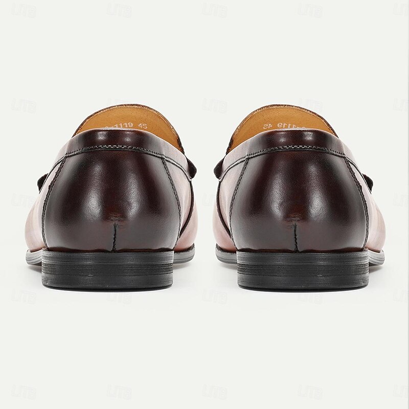 More information about Men's Brown Leather Loafers – Elegant Slip-On Dress Shoes with Metal Detail