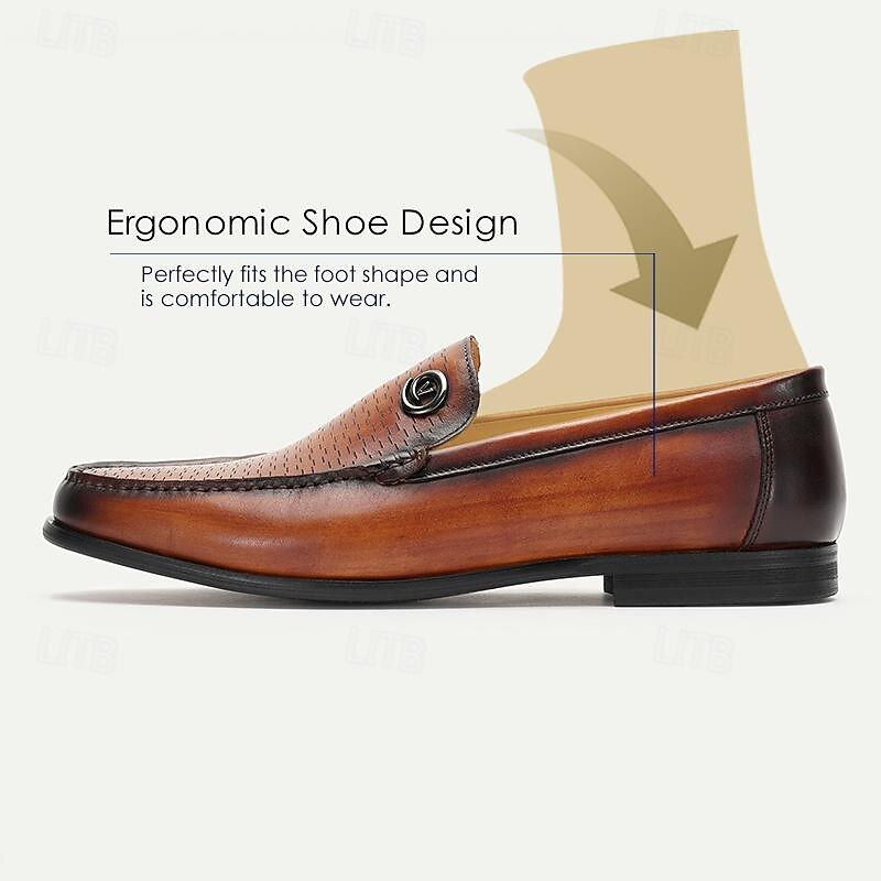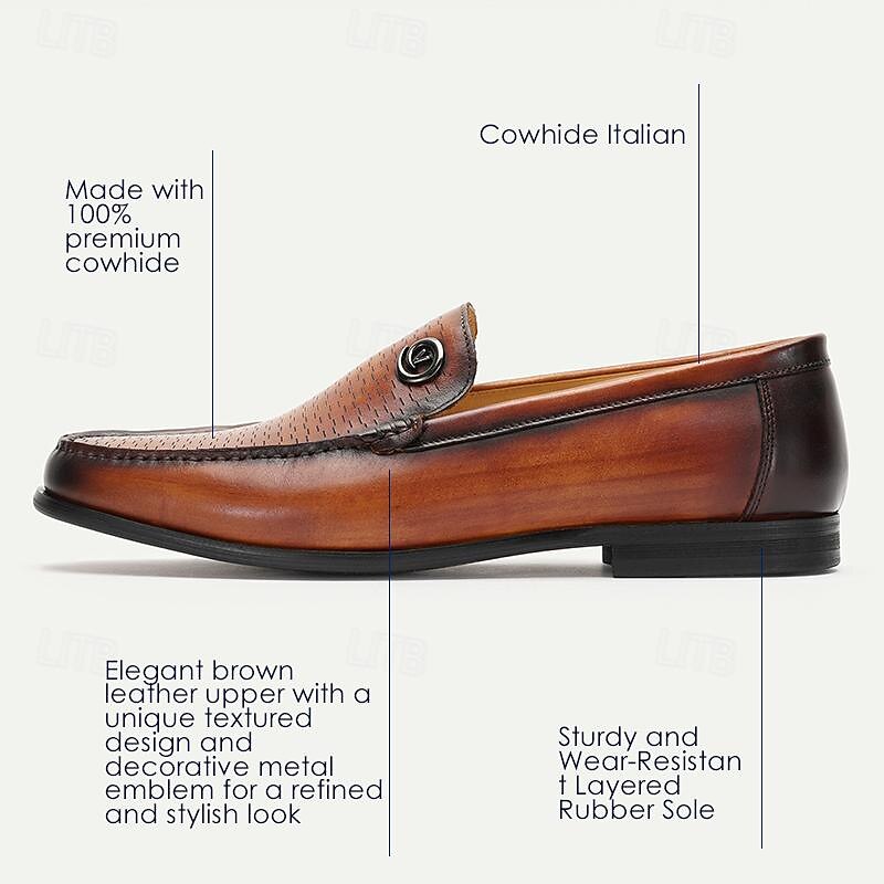trending ! Men's Brown Leather Loafers – Elegant Slip-On Dress Shoes with Metal Detail