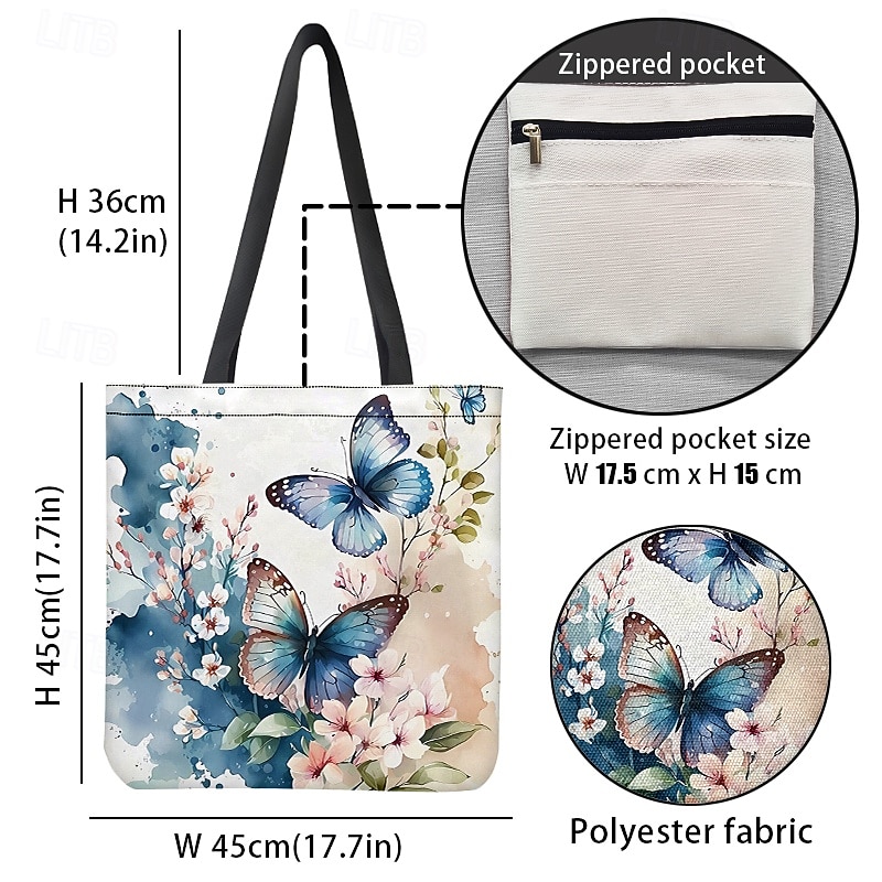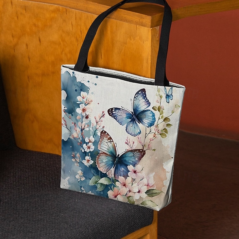 $14.99 - Women's Butterfly Print Canvas Tote Bag with Floral Design, Eco-Friendly Reusable Shopper for Daily Use 2025. Shop for cheap Handbag & Totes online? Buy at lightinthebox.com on sale today!