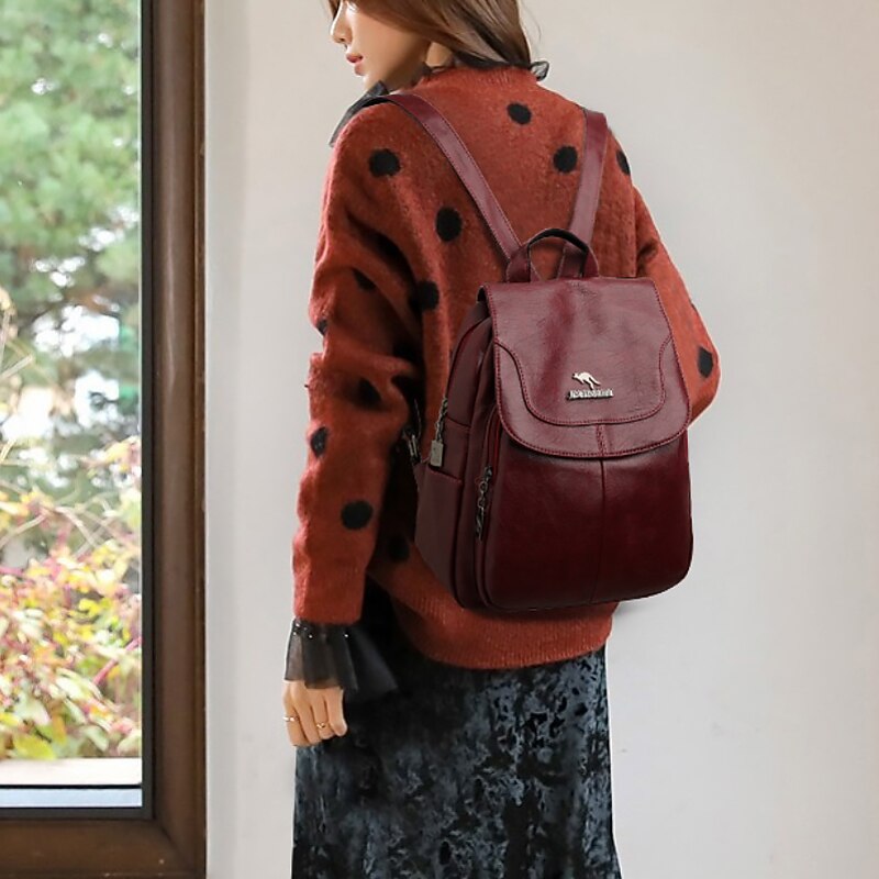 Women's Vintage Faux Leather Backpack Purse with Flap Cover – Large Capacity Anti-Theft Shoulder Bag for Work, Travel, or Daily Use
