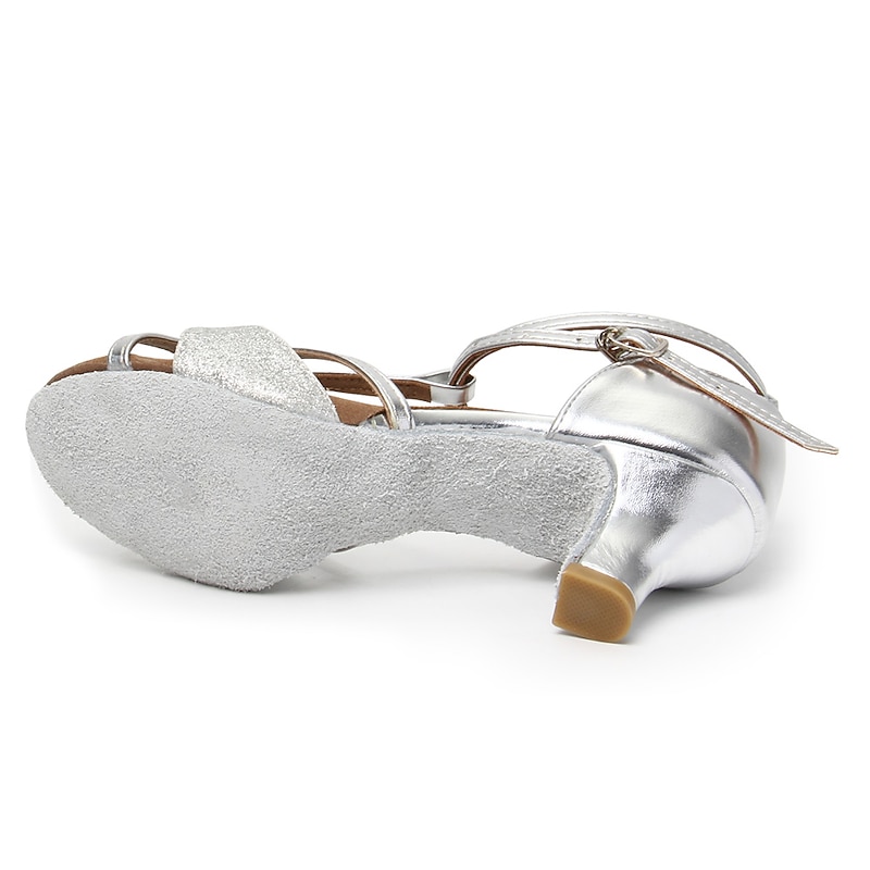 Women's Silver Glitter Latin Dance Sandals with Ankle Strap - impeccable for Ballroom Dancing and Special Events
