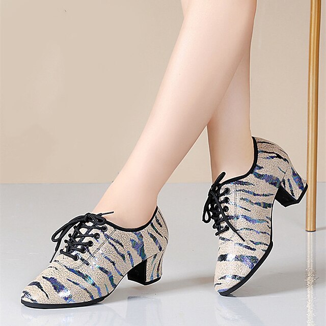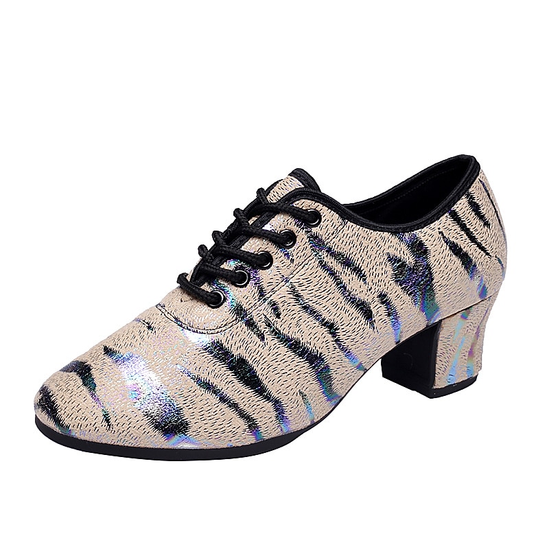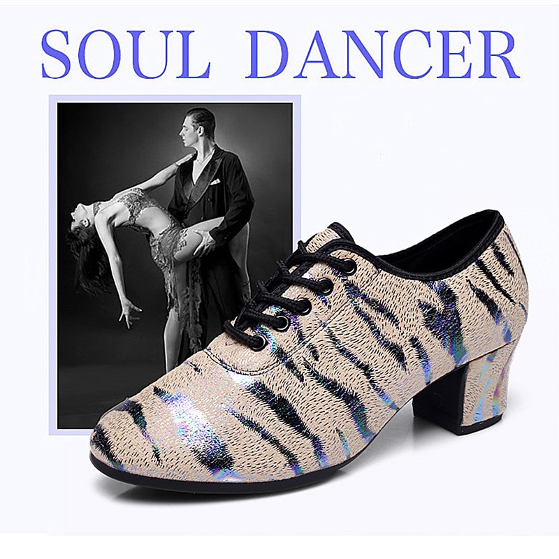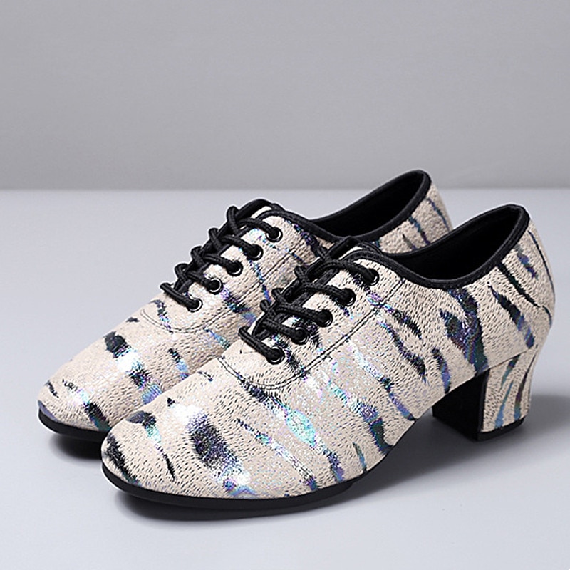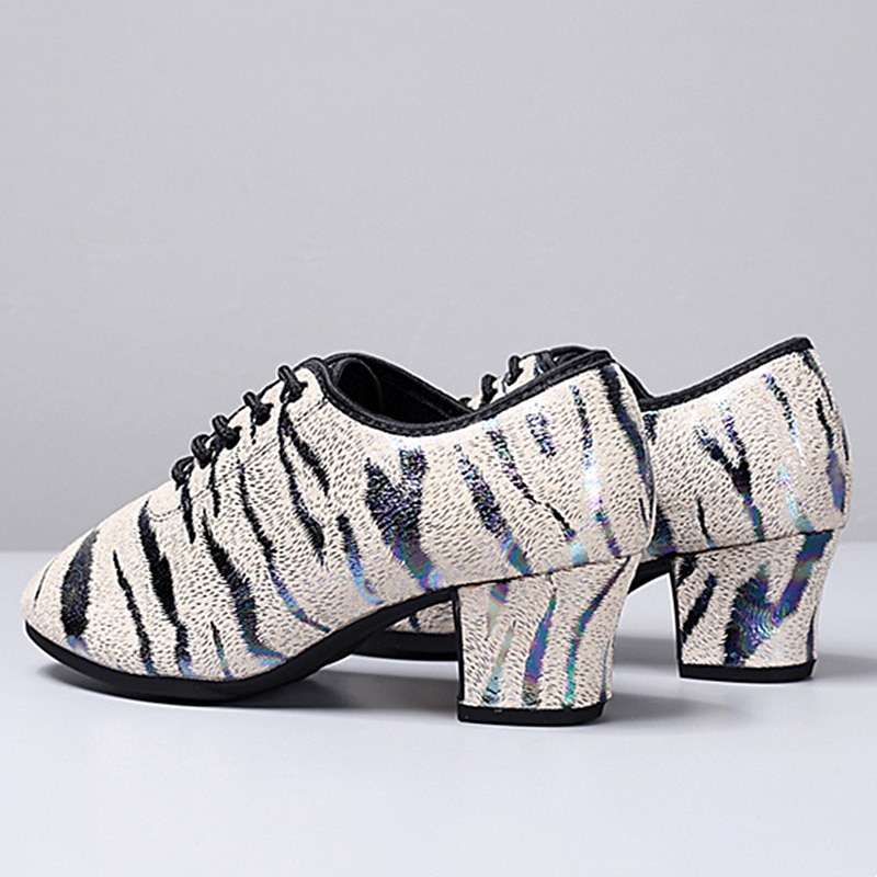 Women's Glitter Dance Shoes with Animal Print, Lace-Up Design, and pleasant Low Heels for Ballroom, Latin, or Party