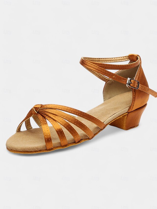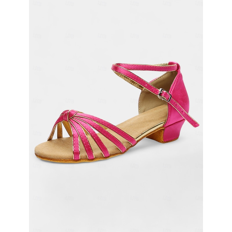 Highlights [Fabric] : Crafted from smooth satin fabric, these women's dance sandals offer a velvety and elegant sheen that captures attention. The supple satin material provides a luxurious feel and enhances the overall aesthetics of the footwear. [Style & Fit] : Featuring an open toe and multiple thin straps crossing over the foot, these sandals ensure both comfort and a secure fit during dance routines. The low heel design provides excellent balance and support, making them ideal for Latin and ballroom dance styles. [Design Highlights] : The dance shoes boast an adjustable ankle strap, complete with a delicate buckle closure for a personalized and secure fit. The cushioned inner sole adds an extra layer of comfort, making these sandals perfect for extended wear on the dance floor. [Occasions] : Designed for a variety of dance events, these sandals are perfect for salsa, samba, cha-cha, rumba, and other social dancing occasions. Whether at a dance party or a formal evening event, these shoes blend functionality with style, making them an essential for dancers seeking elegance and performance. [Size Range] : Available in a broad range of sizes, from US8.5 for toddlers to US7 for big kids, ensuring a fit for dancers of different ages and sizes. For the best fit, select your usual size as the shoes are designed to cater to standard measurements. Perfect for everyday use. superior materials and excellent craftsmanship ensure long-lasting durability.