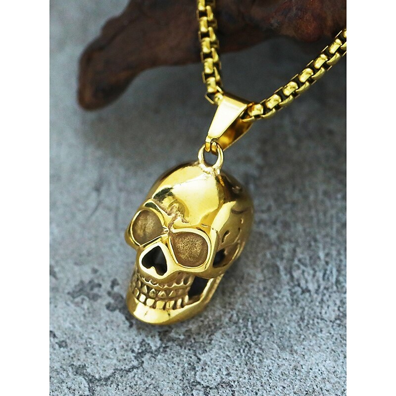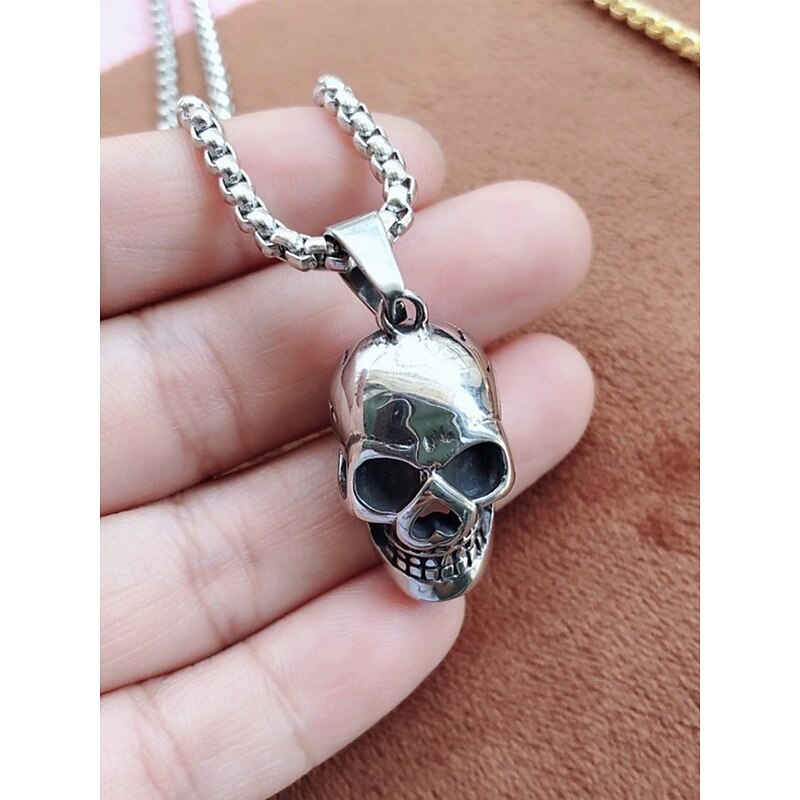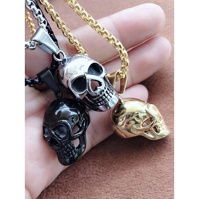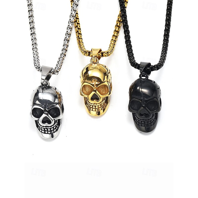 $7.99 - Men's Halloween Skull Pendant Necklace – Gothic Metal Alloy 3D Skull on Cuban Chain, Polished Gold/Silver/Black, Adjustable Clasp – Biker Punk Style for Costume Party, Cosplay & Night Out 2025. Shop for cheap Halloween Accessories online? Buy at lightinthebox.com on sale today!