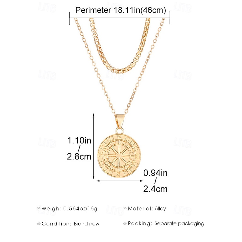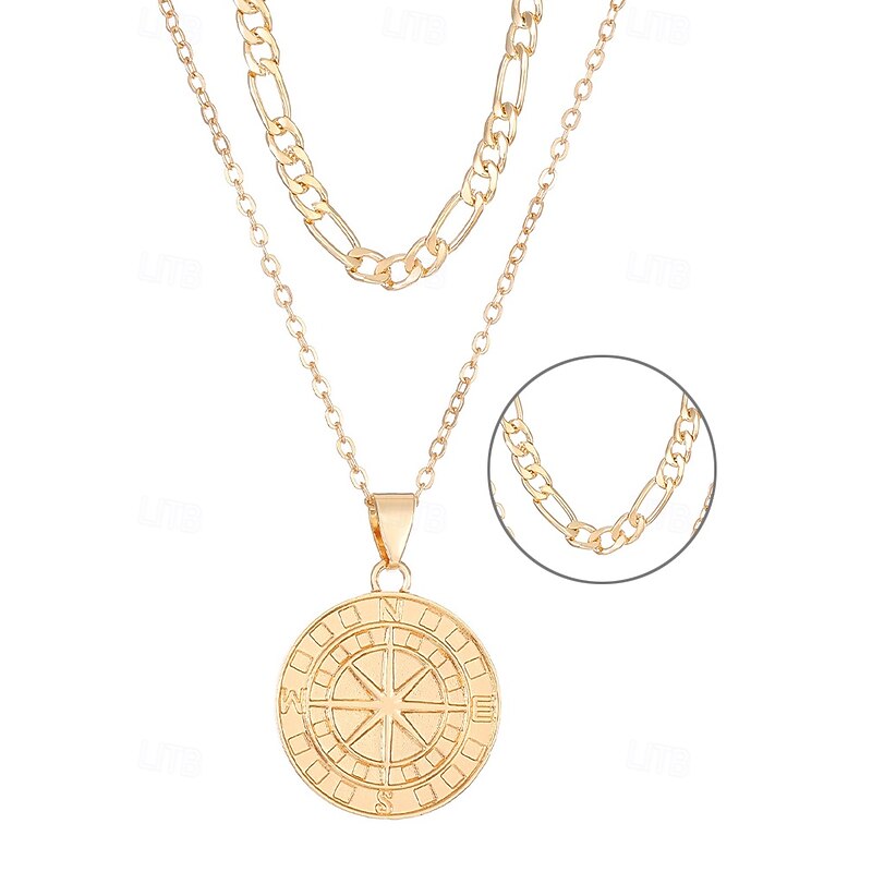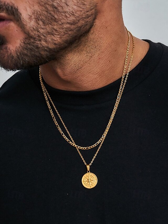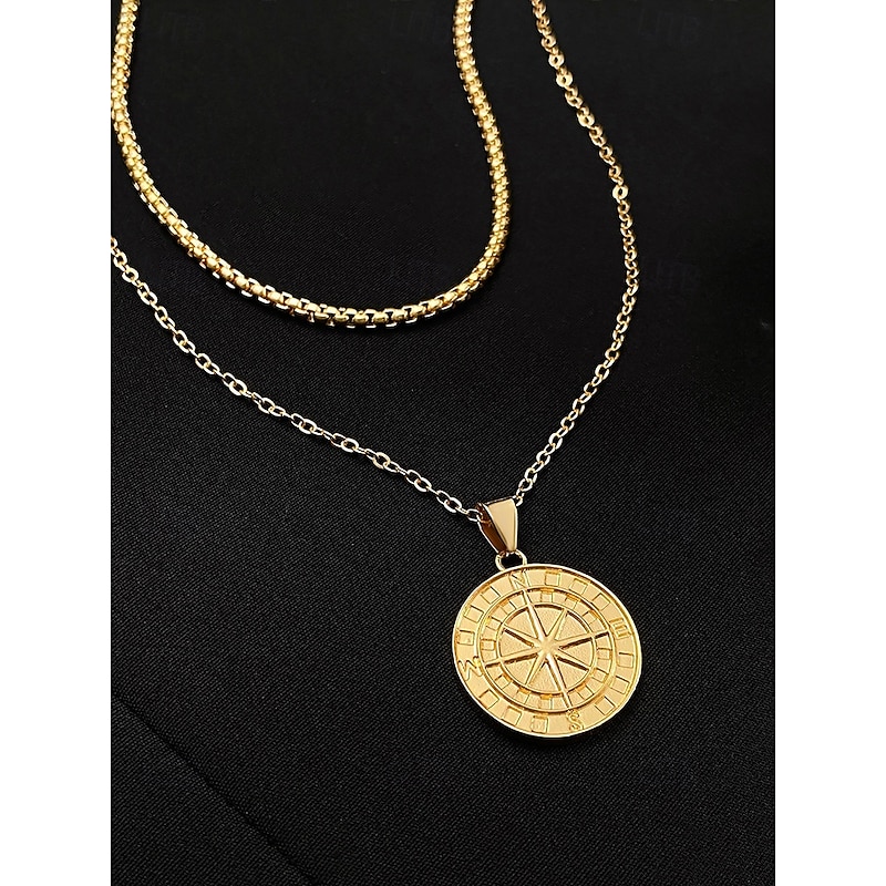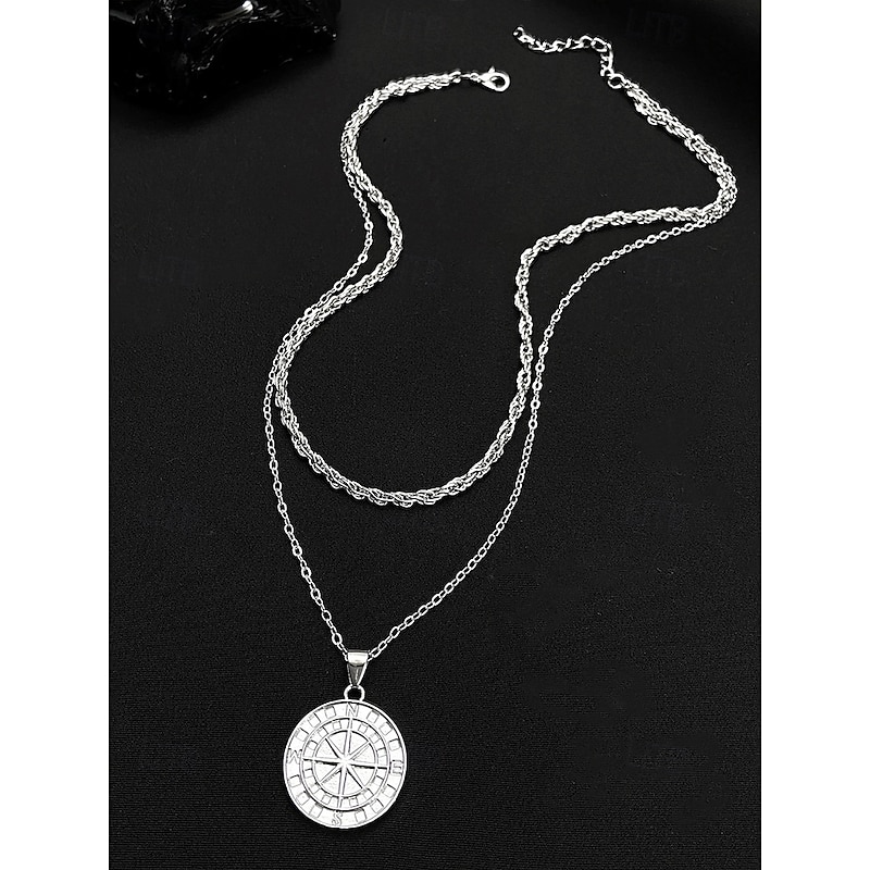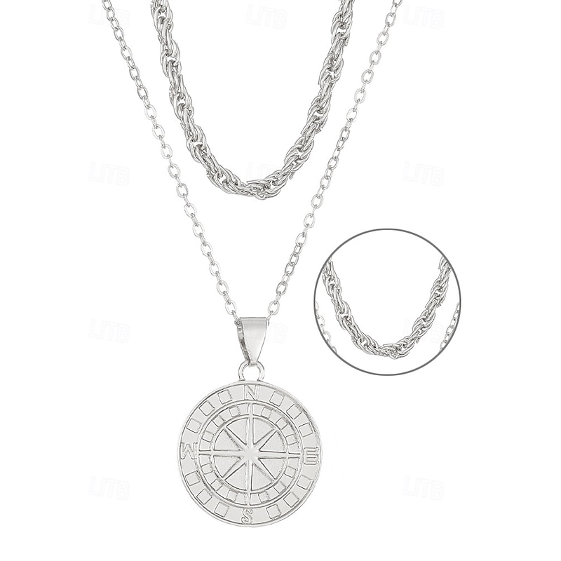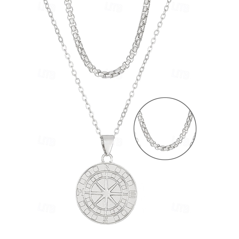 $11.99 - Men's Vintage Compass Pendant Necklace – Alloy Metal Double-Layer Chain, Nordic Viking Amulet, Nautical Jewelry for Travel & Adventure 2025. Shop for cheap Men's Jewelry online? Buy at lightinthebox.com on sale today!