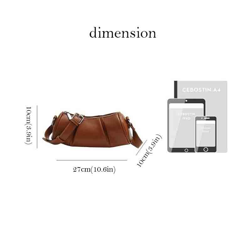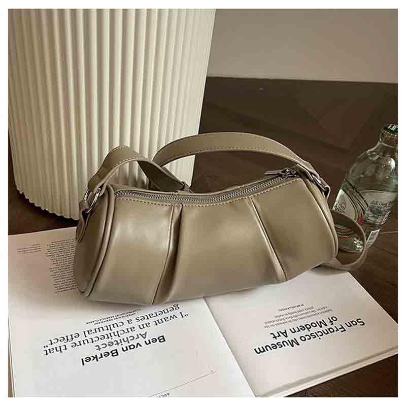 Retro hand-held PU cylindrical bag for women, niche pleated texture, commuting shoulder bag, crossbody bag