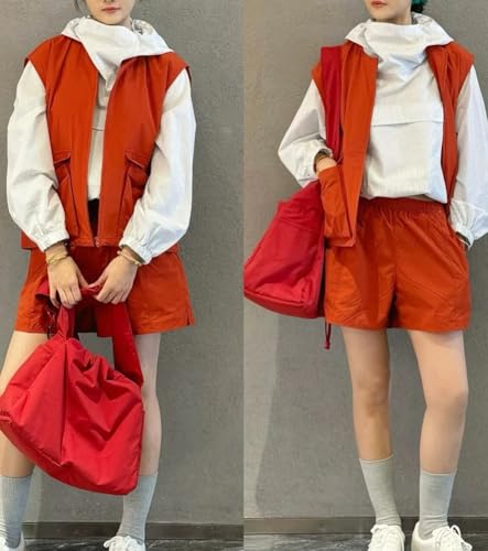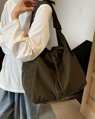 Casual Nylon Shoulder Tote Bag for Women Large Lightweight Canvas Travel Crossbody Purse Handbags with Drawstring