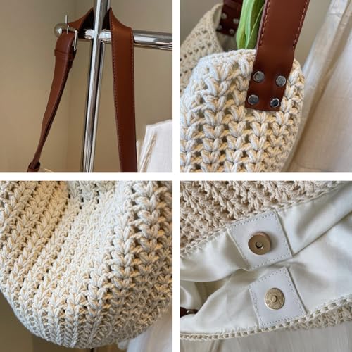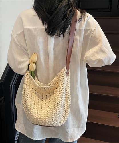 trending ! Knit Bucket Boho Shoulder Bag for Women Large Crochet Slouchy Handbag Woven Summer Beach Crossbody Tote Purse