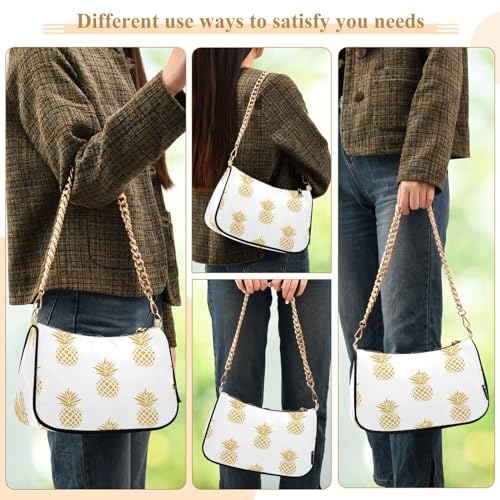 Shoulder Bags for Women Gold Pineapple Hobo Tote Handbag Small Clutch Purse with Zipper Closure