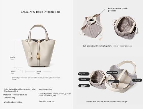 Origin: ImportedClosure type: Kiss LockItem Display Dimensions: 6.69 x 7.48 x 7.48 inches【Premium Material】The bag is made of high-quality genuine calf eather. This leather feels great to the touch, has a clear texture, is lightweight, is also strong, resistant to scratches and tears, and is durable.The more you use it, the softer and more durable it becomes!【Fashionable Matching】 Metal lock-shaped decorative buckle, simple and iconic, matched with gold-textured hardware, Whether it's a business meeting, a brunch with friends, these satchel handbags effortlessly transition between different settings.【Dimensions】Approx L_ 17 CM L x W_19CM x H_18CM, Weight: 0.45KG/1lbs. Can be put into the phone cosmetics perfume, etc. This exquisite and lightweight bags can make you feel relaxed and joyful during travel, life and work.【Partitioned storage】It can be used in conjunction with the lining bag to add partitions and organize the storage. The space design is simple and clear, with sufficient opening width for easy access.【Maintenance】 Wipe with wet wipes, stay away from high temperatures, do not iron, keep ventilated and dry. Perfect for everyday use. excellent materials and excellent craftsmanship ensure long-lasting durability.