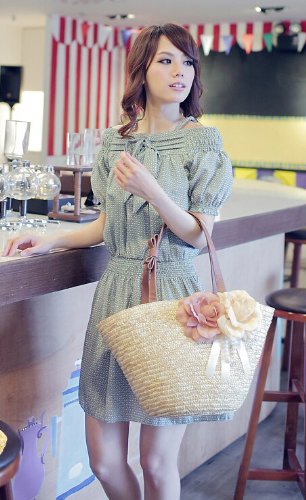 More information about TONWHAR® Woven Straw Shoulder Bag Flower Straw Beach Tote Handbag