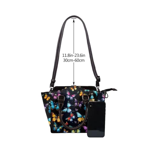 trending ! Leather Shoulder Bag for Women, Butterfly Studded Purse Colorful Bird Crossbody Handbags Punk Hobo Bag with Adjustable Strap