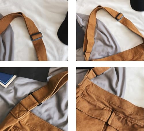 【VERSATILE DESIGN】This Canvas Messenger Bag is designed to cater to both men and women, offering a fashionable and practical solution for everyday use. Its solid color and vintage handbag aesthetics make it a versatile accessory that complements any outfit【SPACIOUS AND CONVENIENT】With its large capacity, this bag provides ample space to carry all your essentials. The horizontal square shape ensures efficient storage and easy access to your belongings. The zipper opening method guarantees security and convenience【DURABLE MATERIAL】Made from high-quality canvas, this shoulder bag boasts exceptional durability and resilience. Its soft texture adds comfort while maintaining its shape, making it perfect for daily use and long-lasting performance【MULTI-POCKETS】The bag's structure features a well-designed layout, including a zipper pocket, a mobile phone pocket, and two small pockets. These compartments help keep your belongings organized, making it easier to find what you need quickly【FASHIONABLE AND TRENDY】This Street trend-style bag is not only functional but also exudes a fashionable charm. Available in classic colors like brown, green, black, and beige, it effortlessly complements different styles and occasions, ensuring you always look on-trend Perfect for everyday use. finest materials and excellent craftsmanship ensure long-lasting durability.