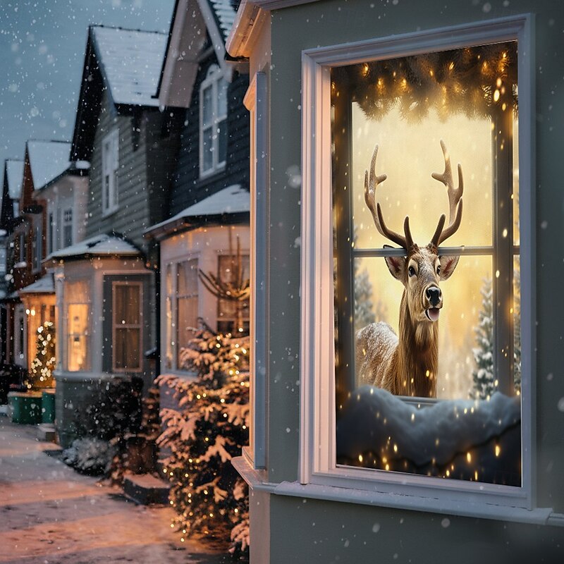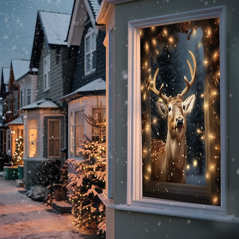 Why Choose Christmas Window Cover Decorations, Fabric Reindeer Gift Festive Curtain Movie Poster Window Door Covering Decor for Farmhouse House, Happy Christmas Window Clings Decals Indoor Outdoor?
