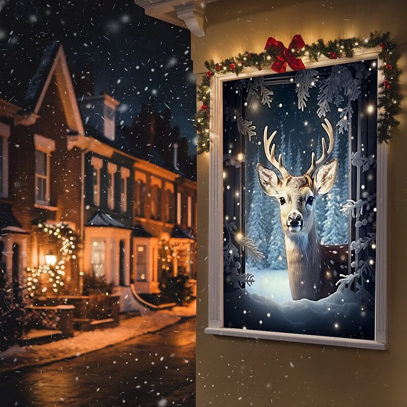 $17.49 - Christmas Window Cover Decorations, Fabric Reindeer Gift Festive Curtain Movie Poster Window Door Covering Decor for Farmhouse House, Happy Christmas Window Clings Decals Indoor Outdoor 2025. Shop for cheap Christmas Tapestry Hanging online? Buy at lightinthebox.com on sale today!
