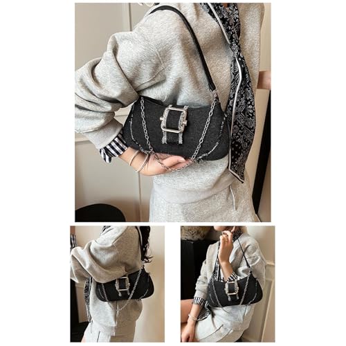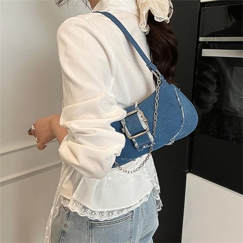 trending ! contemporary Jean Shoulder Bag With Chain Detail For Women Casual Travel Compact Armpit Purse Outdoor Essential Handbag Phone Stor