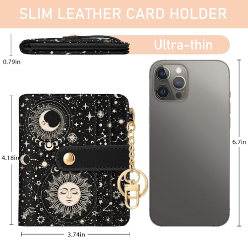 • exceptional Design: The small card wallet features a sophisticated pattern with sun and moon, showcasing your personality and adding a touch of fashion to any outfit; It comes with a front buckle and a zipper pocket, providing convenient and secure storage; Its compact design makes it easy to slip into front pockets, backpacks, and crossbody bags
