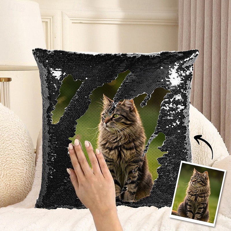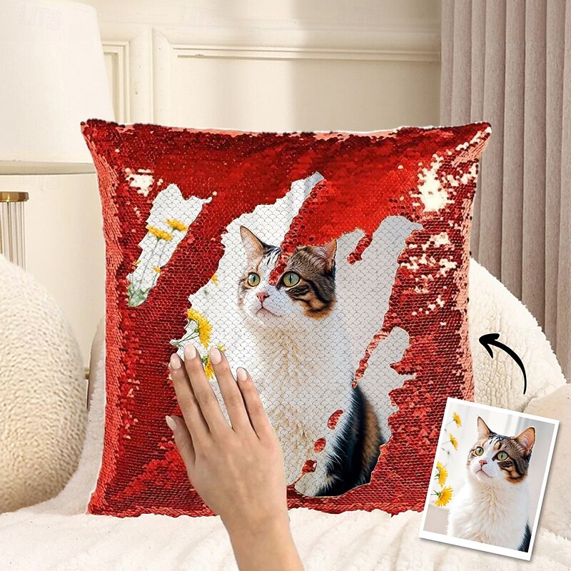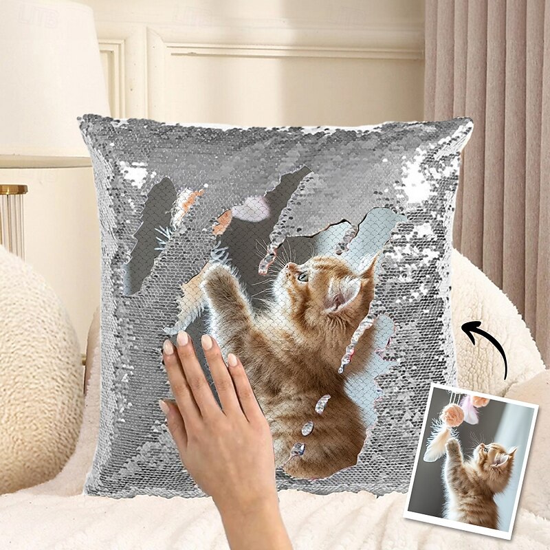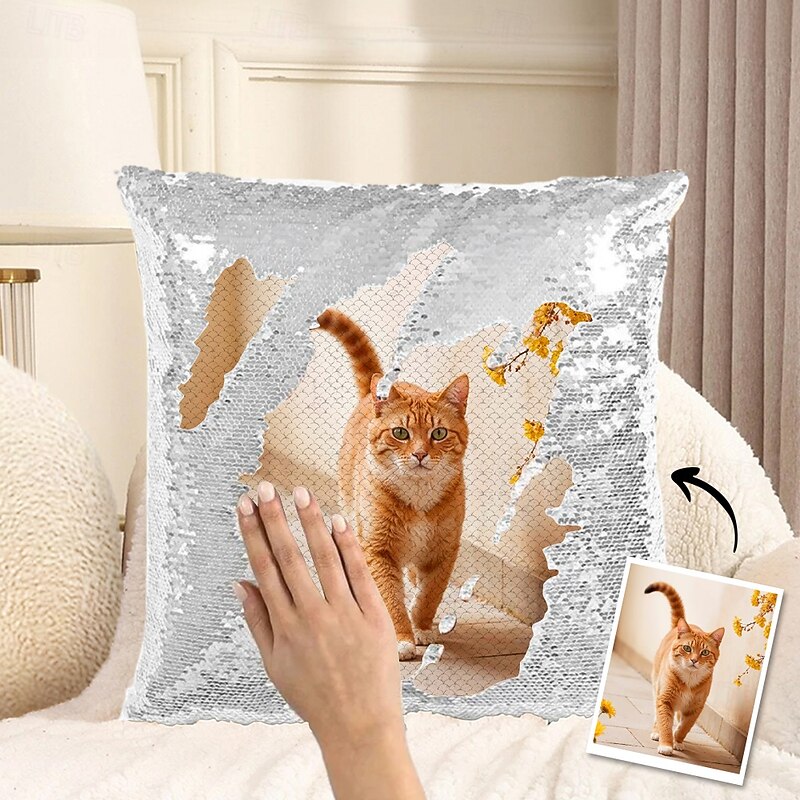 $14.99 - Custom Cat Photo Magic Sequin Pillow Personalized Reversible Throw Pillowcase with Your Pet Picture Gift for Cat Lovers 2025. Shop for cheap Textiles online? Buy at lightinthebox.com on sale today!