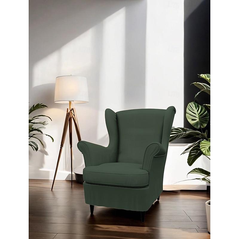 Wing Chair Cover Cotton Twill Armchair Cover Regular Fit with Armrests Machine Washable STANDcover LITB PRIME cover