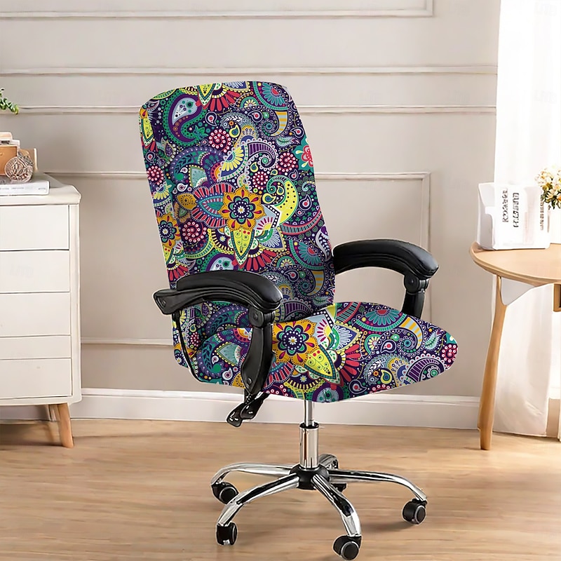 trending ! Office Chair Cover and Stool Chair Cover, Geometric Printed Polyester Slipcovers, Stretch Furniture Protector for Home and Office